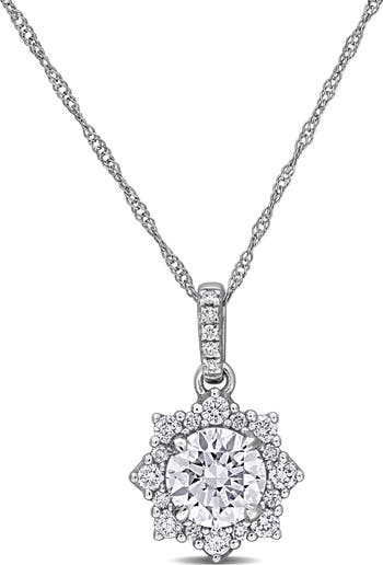 Adorn yourself with this exquisite Lab-Grown Diamond Halo Pendant Necklace in 14k White Gold. This stunning pendant features a brilliant lab-grown diamond encircled by a halo of smaller lab-grown diamonds, creating a dazzling display of sparkle and brilliance. Set in elegant 14k white gold, the pendant hangs gracefully from a 17-inch chain, perfect for special occasions or as a meaningful gift, this pendant symbolizes timeless beauty and ethical luxury with its lab-grown diamonds and impeccable craftsmanship.
