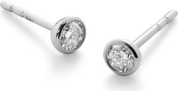 Bezel-set lab-grown diamonds sparkle in round 14-karat-white-gold settings in these dainty, handcrafted stud earrings.