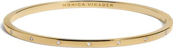 Lab-grown diamonds station this sleek and understated bangle to dial up the shine. Sterling silver gets a plating of 18-karat gold to refine the finish.