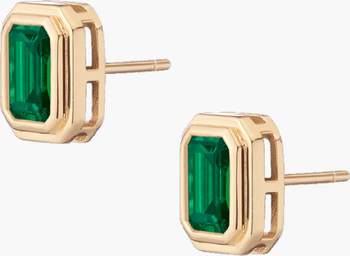 Meet our heirloom-inspired stud, sure to become a true heirloom once it's in your family. Featuring a stunning lab grown green emerald set in a double bezel. Available in vermeil, 14k or 18k solid gold.