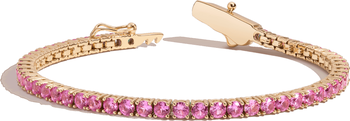 Add color to your stack in a classic (but modern) way. Your favorite gemstone tennis bracelet, now available in Pink Sapphire. Using AAA quality lab grown Pink Sapphires only, this sustainable beauty will be the envy of every event.