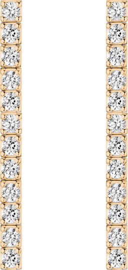A pair of dazzling lab-grown white sapphire earrings, featuring 12-prong set stones that sway and move. These earrings are designed to match our best-selling Lab Grown White Sapphire Tennis Bracelet, offering a modern twist on a classic style.