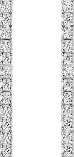 A pair of dazzling lab-grown white sapphire earrings, featuring 12-prong set stones that sway and move. These earrings are designed to match our best-selling Lab Grown White Sapphire Tennis Bracelet, offering a modern twist on a classic style.