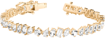 The Mixed Shape Tennis Bracelet is an essential for your jewelry collection. Displaying a total of 8ct lab grown White Sapphires in an arrangement of distinctive cuts prong set in high quality vermeil or rhodium silver, you'll definitely feel at your best, especially knowing your jewelry is secure with a custom box clasp.