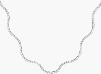 Elevate your style with the White Sapphire Wave Tennis Necklace. This exquisite piece features a stunning wave design adorned with white sapphires, offering a timeless elegance that complements any outfit.