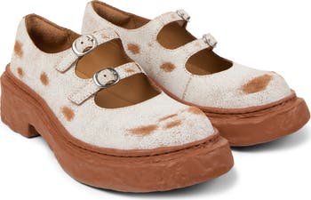A rippled platform and chunky heel enhance the texture of this remixed mary jane shoe made from premium materials.