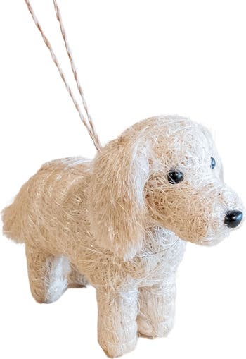 Handwoven by artisans from natural coconut coir, this whimsical ornament brings rustic paw-sonality to any dog lover's decor.
