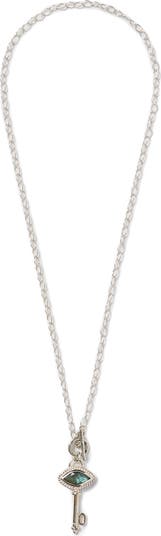 This labradorite-embellished pendant necklace—handcrafted from sterling silver—is the perfect gift for the special someone who holds the key to your heart.