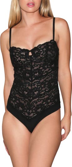 This underwire bodysuit with a stretch-lace bodice with soft mesh lining and an opaque black jersey bottom is perfect for a night out on the town.
