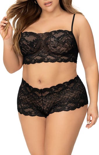 Feel your most stunning in this stretchy lace set featuring a bralette and matching boyshorts.