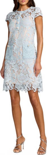 Floral lace mini dress with cap sleeves and applique detailing, feminine fitted silhouette perfect for cocktail parties, bridal events and special occasions