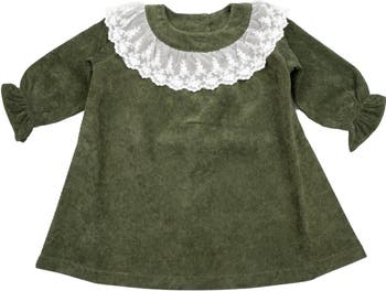 Our Lace Collar Dress is the perfect outfit to dress for the transitional season. This soft, classic heirloom piece is made of 100% Cotton fine wale corduroy. The embroidered lace collar makes this dress the perfect elegant choice for the holidays. Suitable for any occasion, this long-sleeved dress is perfect for your little one, providing comfortable and stylish all-day wear. The Lace Collar Dress has a button closure at the neck and comes and an A-line skirt. We recommend washing on a gentle cycle and line dry to protect the quality of the outfit.