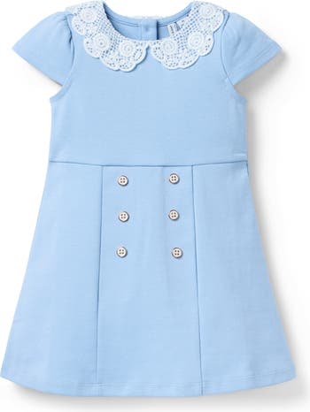 Our signature ponte dress is a style classic. Featuring a lace collar, cap sleeves and button details too.
