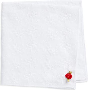 Add textural contrast to your look with this pocket square crafted in the USA from cotton lace and detailed with a rosette for a pop of color. The rosette serves as the brand's signature button that's designed to hook on your suit pocket to prevent the square from sliding down.