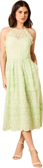 Step out in style with this exquisite lace detail halterneck midi dress by Oasis. Perfect for any occasion, it combines elegance and comfort effortlessly.