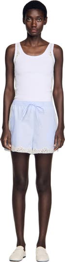 Wide-leg hotpants with a lace trim on the hem and an elasticated tie waist.