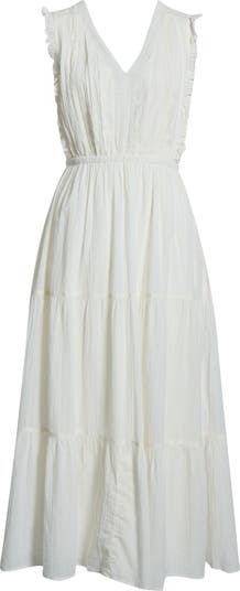 Lace Detail Tiered Cotton Midi Dress