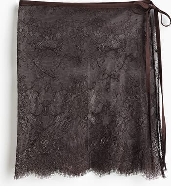 Short hip scarf in lace with narrow ties at one side.
