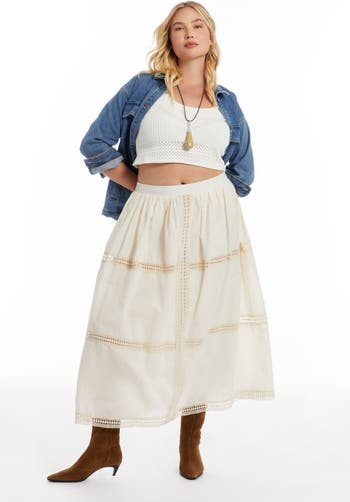 A story stitched in airy voile, this lace midi skirt drifts with vintage charm and modern grace, cinched softly at the back for ease and romance that lingers.