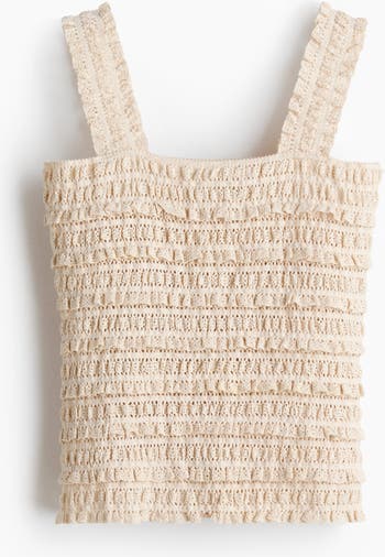 Top in a lace jersey made from a cotton blend with frill trims throughout the design. Features a square neckline and wide, elasticated shoulder straps.
