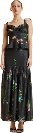 Delicate lace trim, tie straps, and a peplum flare—this silky cami is sweet, feminine, and a little flirty. Wear it with denim, skirts, or the matching midi for a perfectly dreamy set.