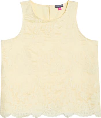 Tonal blooms sweeten a summery tank finished with a scalloped hem.
