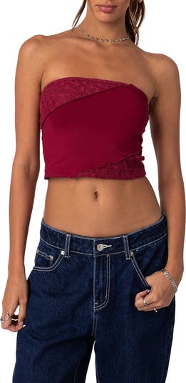 Lace Patchwork Crop Tube Top