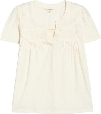 A lace-and-pintucked yoke textures this flowy top framed by fluttering sleeves and cut from soft cotton.