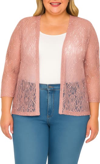 Add a splash of sparkle with a sheer jacket offered with tonal texture.