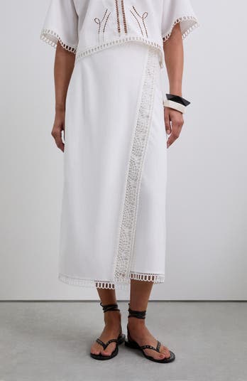 Sarong style skirt with lace details and made of a blend of cotton and linen