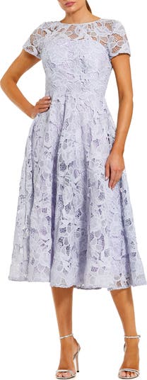 Lace Short Sleeve A Line Midi Dress With Bow