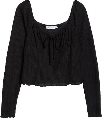 A lacy top with a sweetly tied neckline works for looks both fun and fancy.