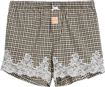 Lace Trim Check Stretch Cotton Boxer Shorts