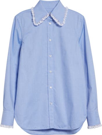 Take style cues from Alessandro Michele's retro-eclectic runway characters with this crisp Italian-cotton oxford button-up shirt that tilts trad tailoring into romantic territory with panels of pretty floral lace.