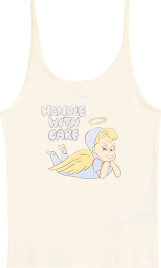 Remind those around you to be sweet in this lace-trimmed camisole featuring a vintage-inspired graphic.