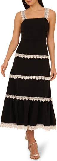 Made of buttery soft ponte, this drop-waist sundress has crochet-inspired lace trim bringing a boho vibe to your next brunch date.