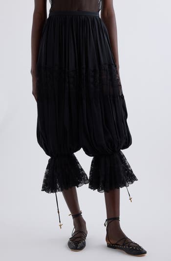 Sewn in a billowy harem-inspired silhouette with flared cuffs, these runway-featured silk pants trimmed with lace perfectly capture the spring '25 collection's themes of lightness and flow.