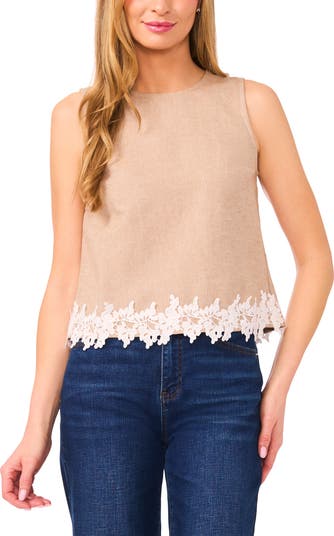 Lace appliqué trim adds an extra touch of vintage-chic style to this woven sleeveless top.