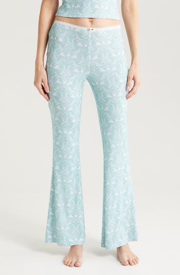 A rosette accent centers the lace trim on these flare pants crafted from dreamy stretch-kissed modal and stamped with a regal pattern.