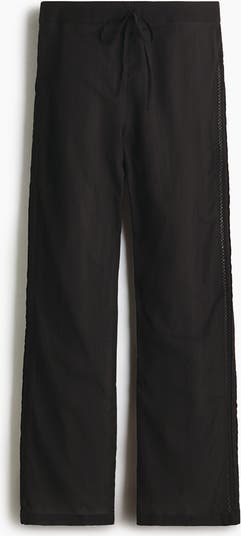 Pyjama bottoms in a lightweight weave made from a cotton and viscose blend. Regular waist with a decorative drawstring at the front and smocked elastication at the back. Straight legs with a lace trim and sewn-in creases down the side.