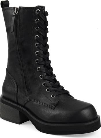Complete your look with the workwear-inspired style of this lace-up boot lifted by a chunky block heel.