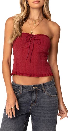 EDIKTED Lacey Tube Top, Main, color, Burgundy