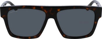 Modified rectangular frames bring a contemporary twist to these bold sunglasses styled with colorblocked temples.