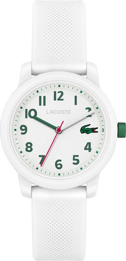 Bold, easy-to-read markers add to the kid-friendliness of this sporty watch set on a flexible silicone strap and stamped by a signature crocodile.