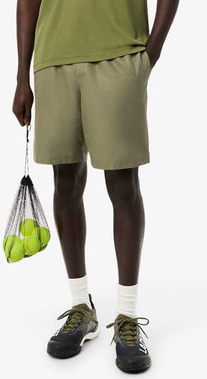 Breathable, diamond-textured athletic shorts eased on with a drawstring waist offer premium comfort in a loose, relaxed-fit.