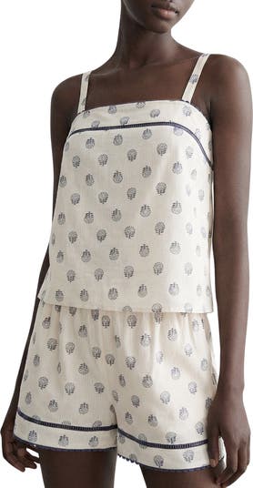 Lounge around or doze off in these airy cotton pajamas made with ladder-stitch insets and a vintage-inspired print.