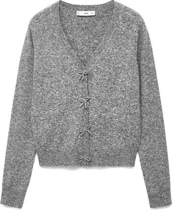 Dainty bows charm this woolly cardigan framed by dropped shoulders for a slouchy fit.