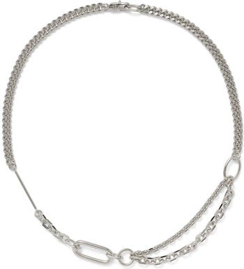 Asymmetric layered chains underscore the contemporary style of this handcrafted necklace punctuated with logo-engraved oval links.