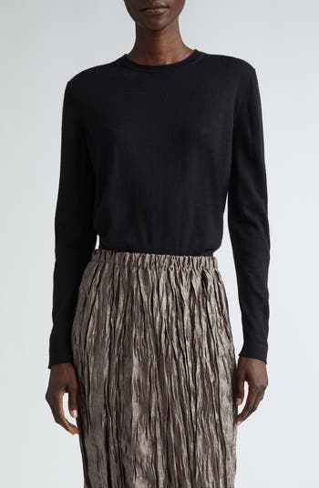 A fine-gauge knit of soft cashmere yarn ensures the lightweight luxury of this staple slim-fit sweater featuring rolled edges for tactile definition.