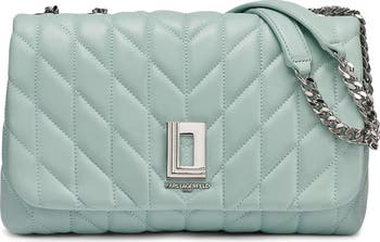 Turn heads with the Karl Lagerfeld Paris Lafayette Quilted Floral Shoulder Bag. Crafted from genuine leather, its elegant quilted design and floral accents exude timeless sophistication. Featuring double handles, a magnetic closure, and organized interior pockets, it’s perfect for brunches or evening soirées.